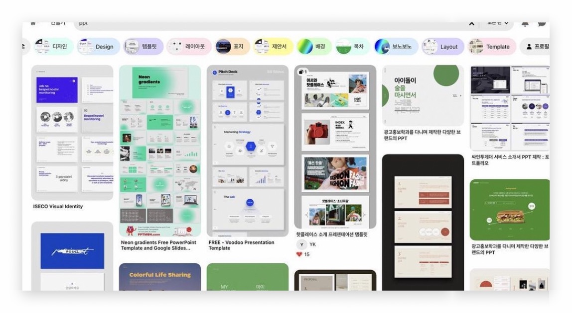 PPT 레퍼런스 검색의 정석, PinterestPPT를 제작할 때, 독창적이고 세련된 디자인을 위해 참고 자료를 찾으면 정말 많은 도움이 된답니다. PPT 레퍼런스 검색에 유용한 플랫폼인 Pinterest를 활용해보세요.!Pinterest는 이미지를 기반으로 아이디어를 탐색할 수 있는 플랫폼이죠. PPT 템플릿, 도식, 그래프, 컨셉 레이아웃 등 다양한 디자인 자료를 찾는 데에도 유용합니다. 구체적인 키워드를 활용해 검색하면 필요한 자료를 빠르고 간편하게 찾을 수 있습니다. 1. 다양한 자료 제공: 디자인 템플릿부터 그래프, 레이아웃 아이디어까지 폭넓은 레퍼런스를 제공합니다. 2. 맞춤형 검색 가능: 키워드 입력만으로 원하는 스타일과 주제의 자료를 찾을 수 있습니다. 3. 컬렉션 저장 기능: 마음에 드..